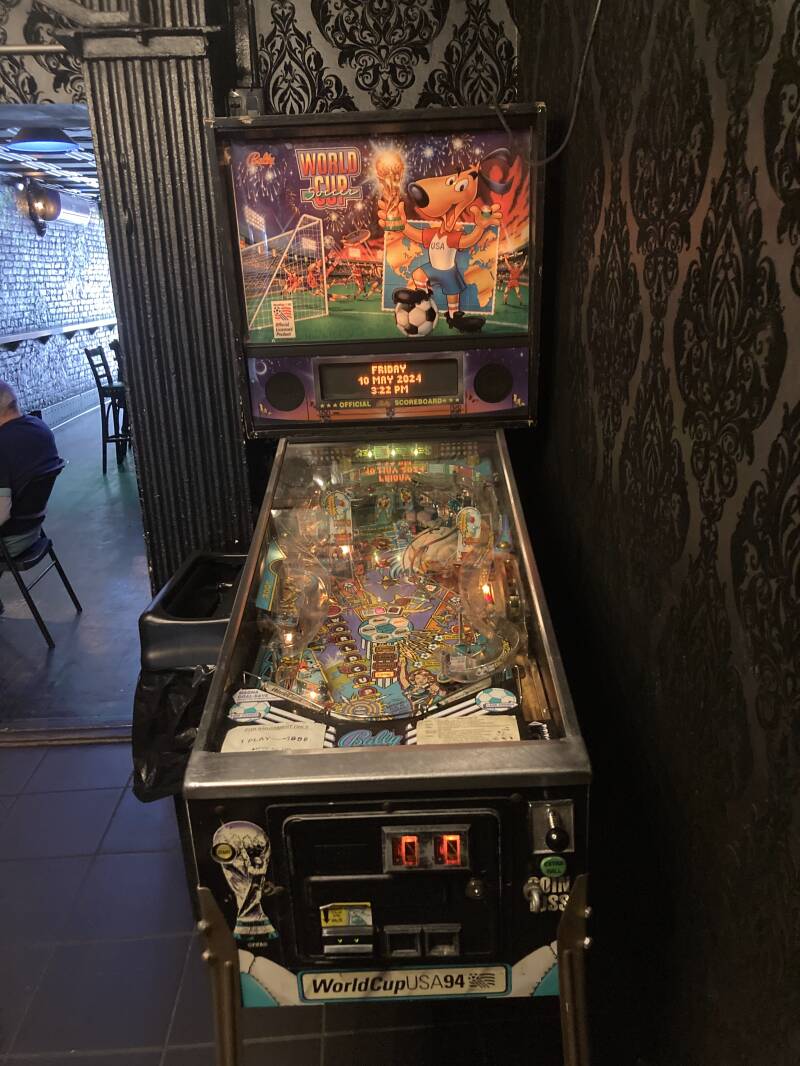 World Cup Soccer '94 is also a classic. The rake is especially steep and the machine slopes heavily left. That should be enough local knowledge to get you to the final match!